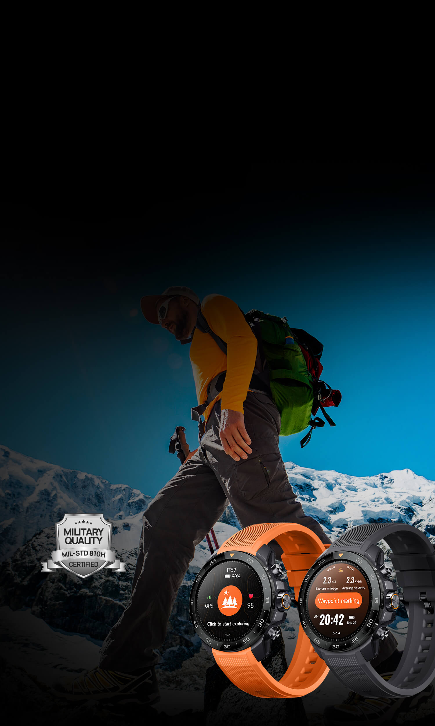 Der GS Explorer S ist darauf ausgelegt, in extremen Umgebungen zu bestehen, einschließlich extremer Hitze, Feuchtigkeit sowie sandiger oder staubiger Bedingungen.