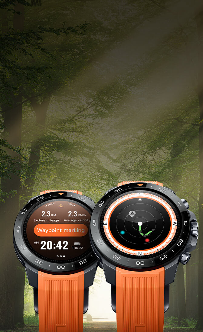 Präzise Outdoor-Navigation mit L1+L5 Satellitentracking (200% besseres Signal, 20% höhere Genauigkeit). Ein-Knopf-Explorer-Modus bietet Wegpunkt-Markierung (eigene Symbole), Track-Rückweg-Navigation (offline), Wetterwarnungen und wichtige Tools wie Kompass und Barometer.