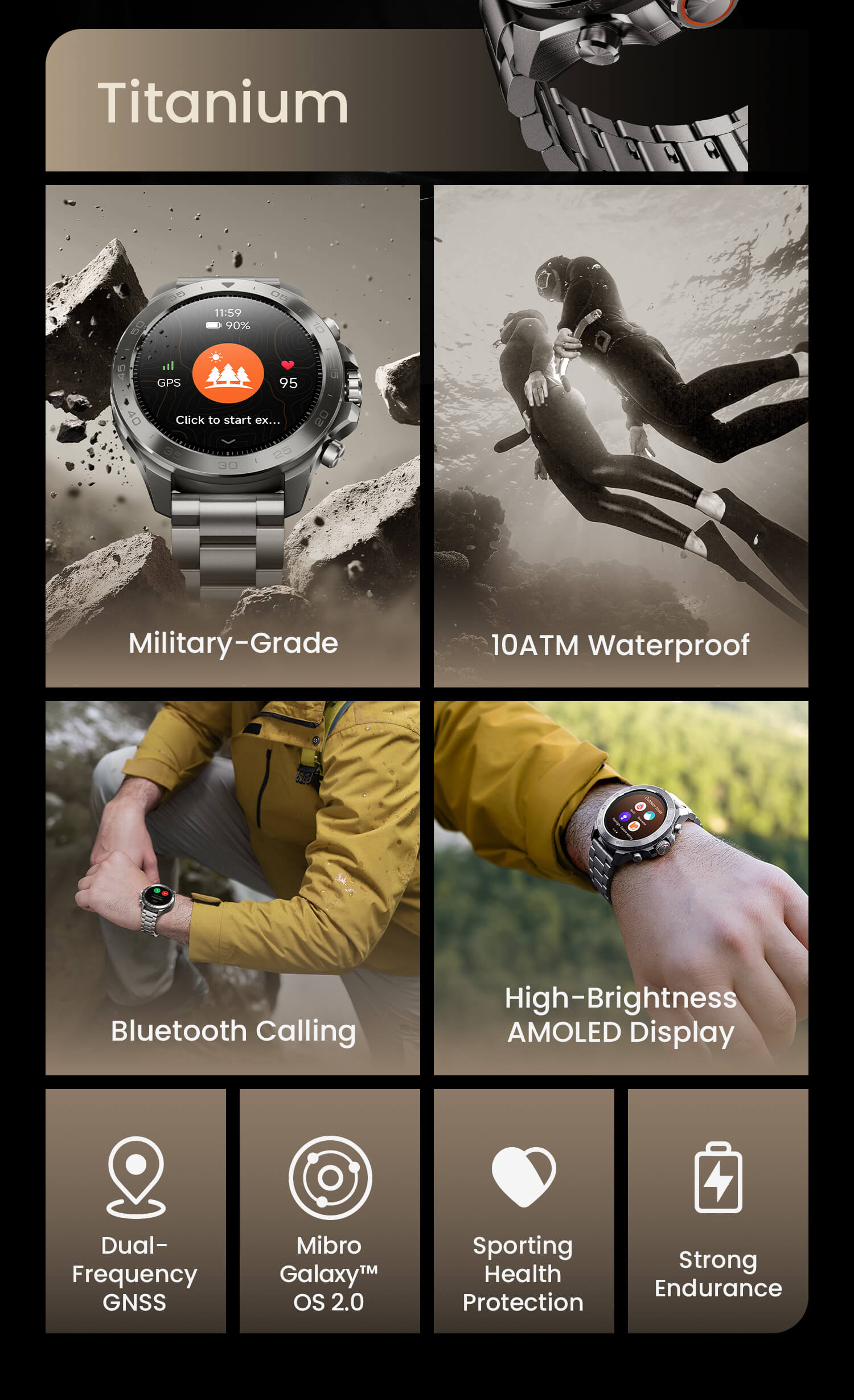High water resistance and audio rarely go together—only a few top-tier brands have make it happen due to intense technical challenges.Now, Mibro breaks the barrier. With breakthrough waterproof technology, we deliver 10ATM (100m) resistance while keeping Bluetooth calling clear—even in extreme conditions.
