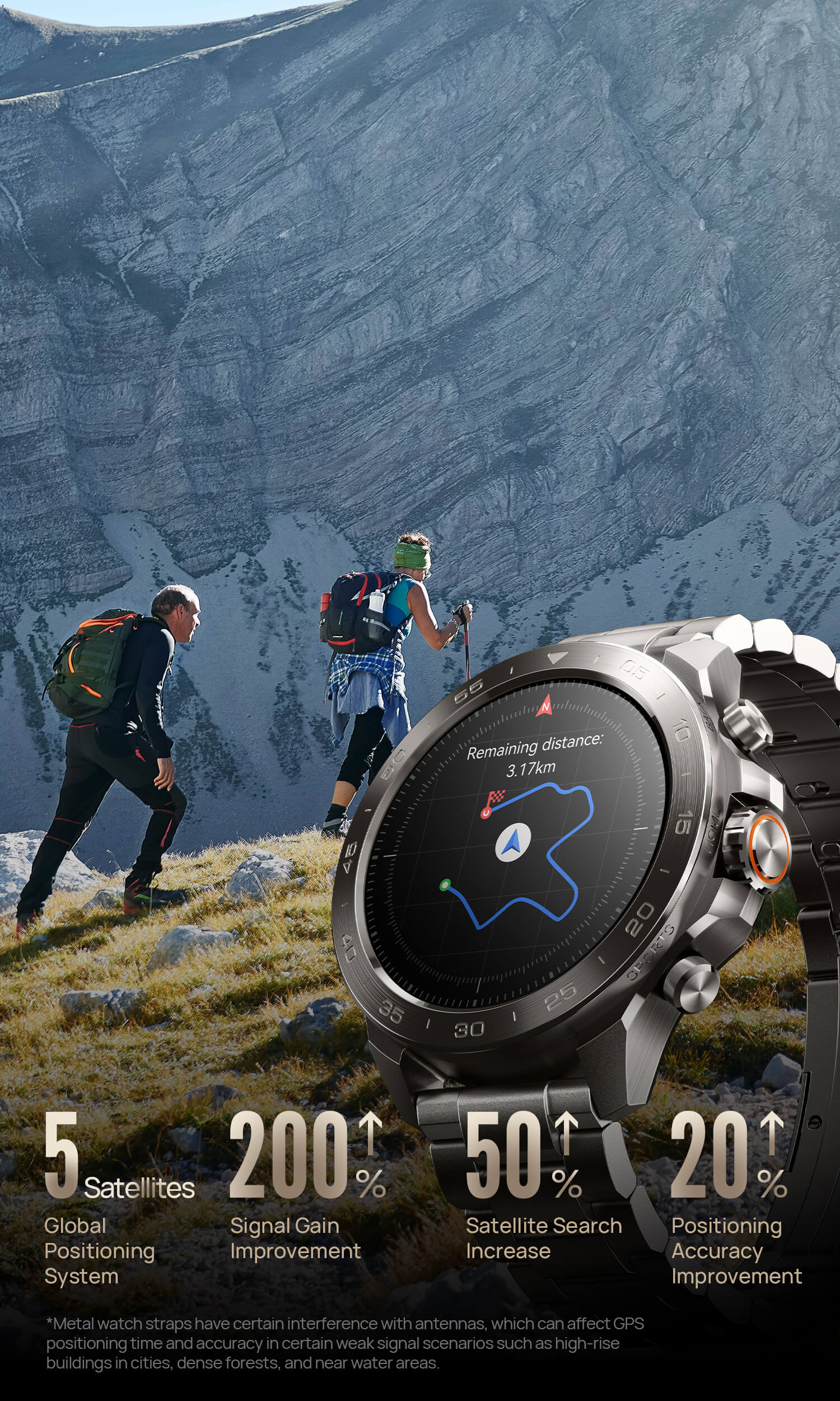 Built-in dual-frequency GNSS positioning chip, supporting L1+L5 GPS bands, offering wider signal coverage, higher energy efficiency, and more accurate distance and route tracking.