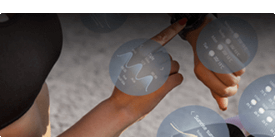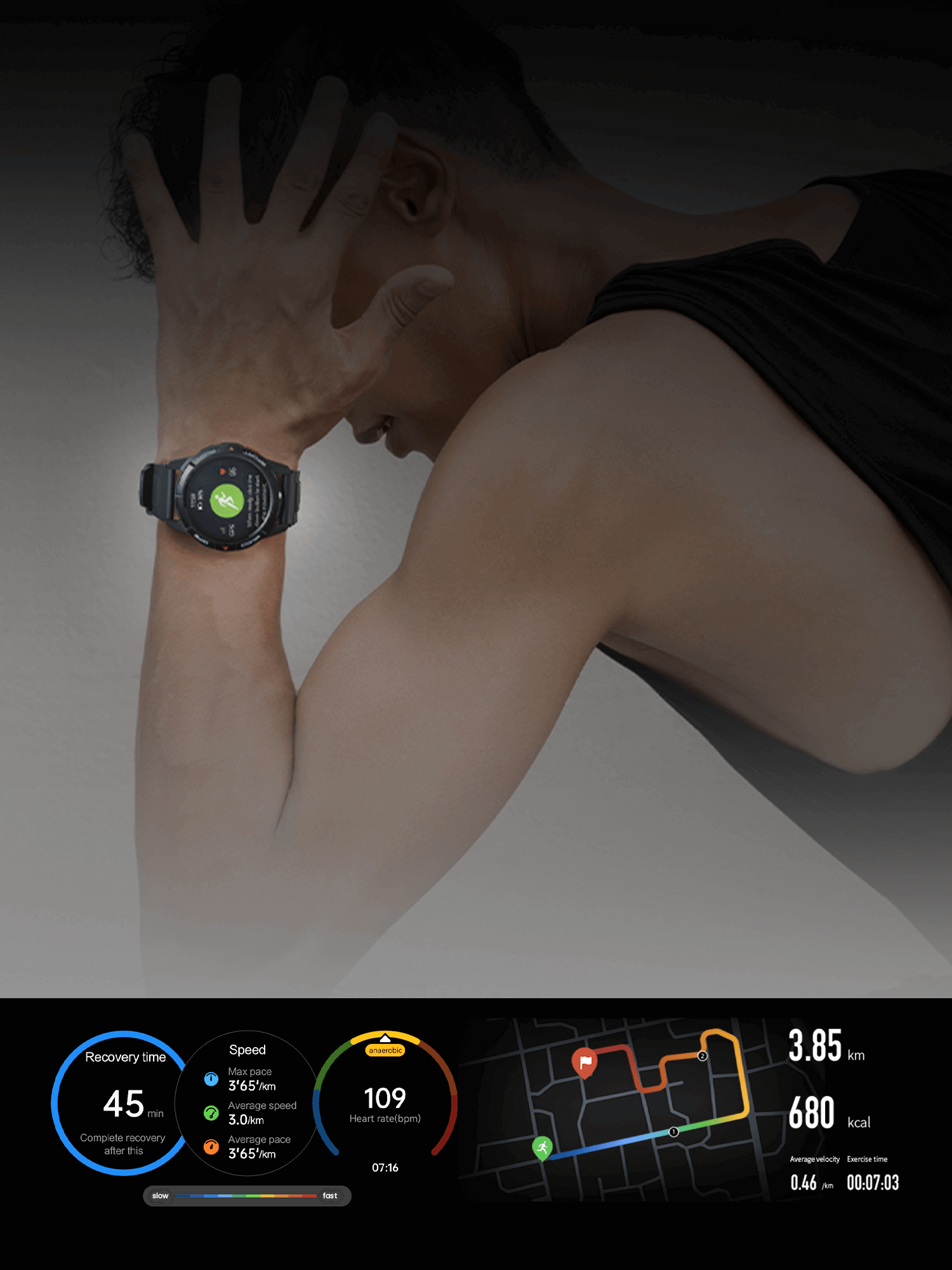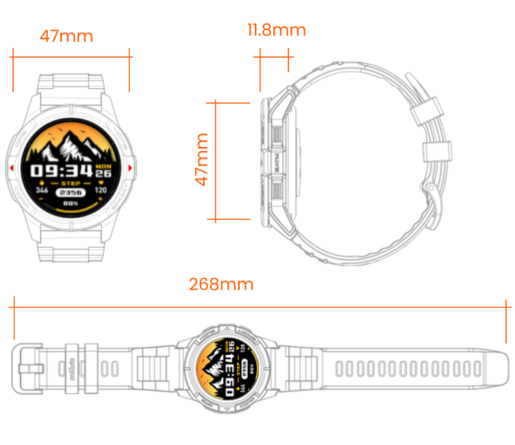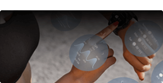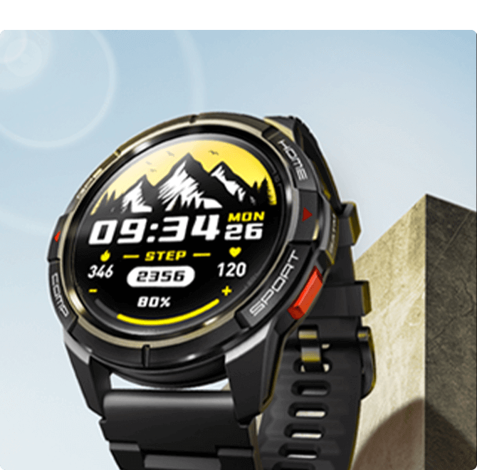 1000nit AMOLED-Display, bei Sonnenlicht gut sichtbar. Greife auf Benachrichtigungen, Gesundheitstools, Telefonfinder und mehr zu – alles in einem.