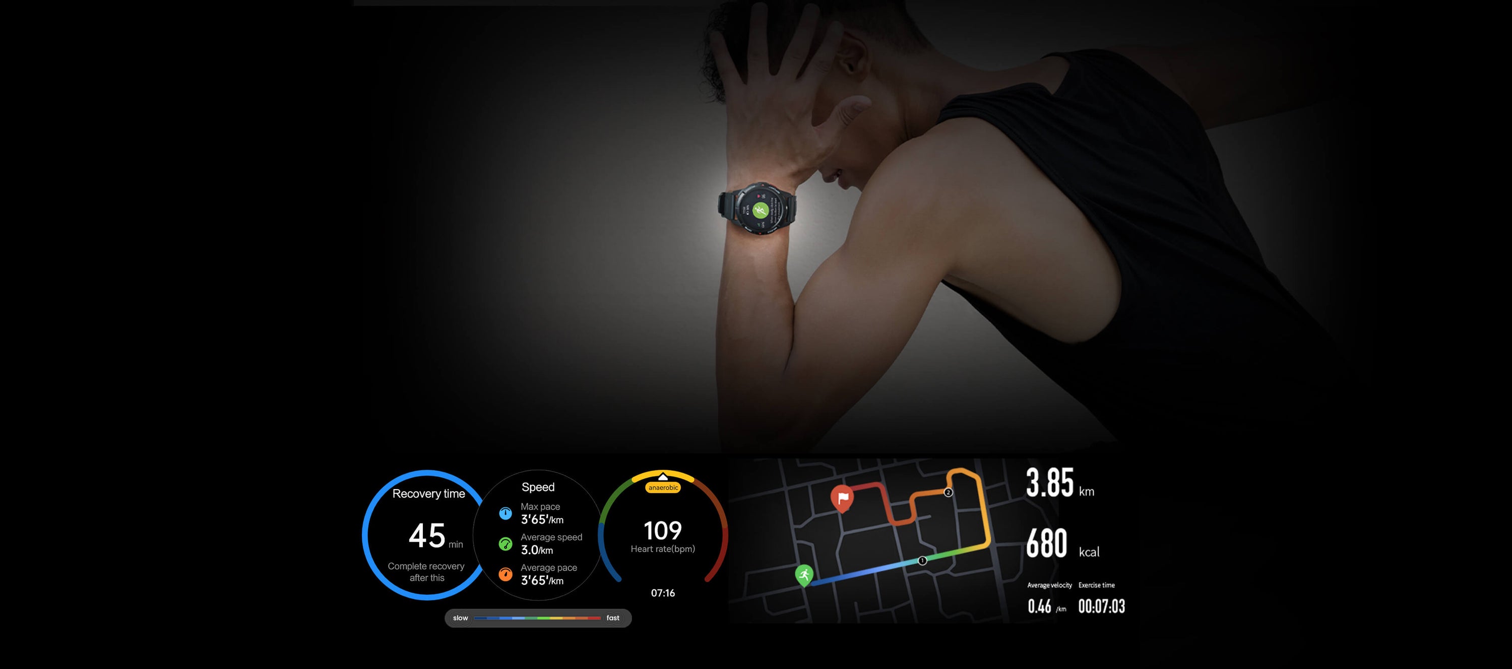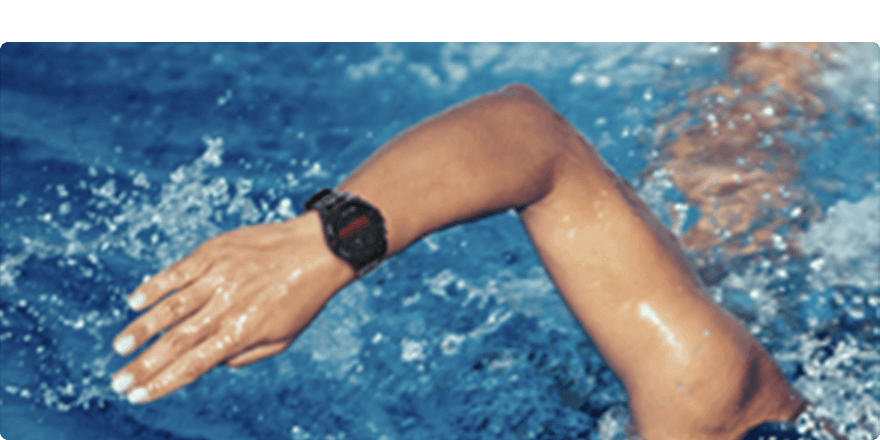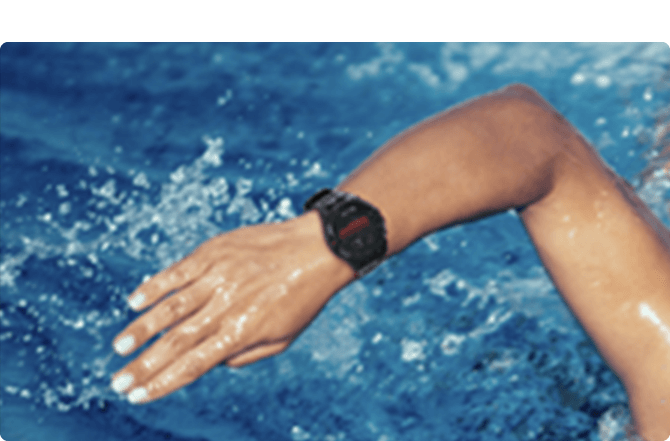 5ATM wasserdicht, 150 Sportmodi mit SeekBeats™ Motion Algorithmus. 10-Achsen-Sensoren für präzise Bewegungserkennung, einschließlich Schwimmtechnik-Erkennung, Unterwasser-Herzfrequenz und SWOLF-Verfolgung.