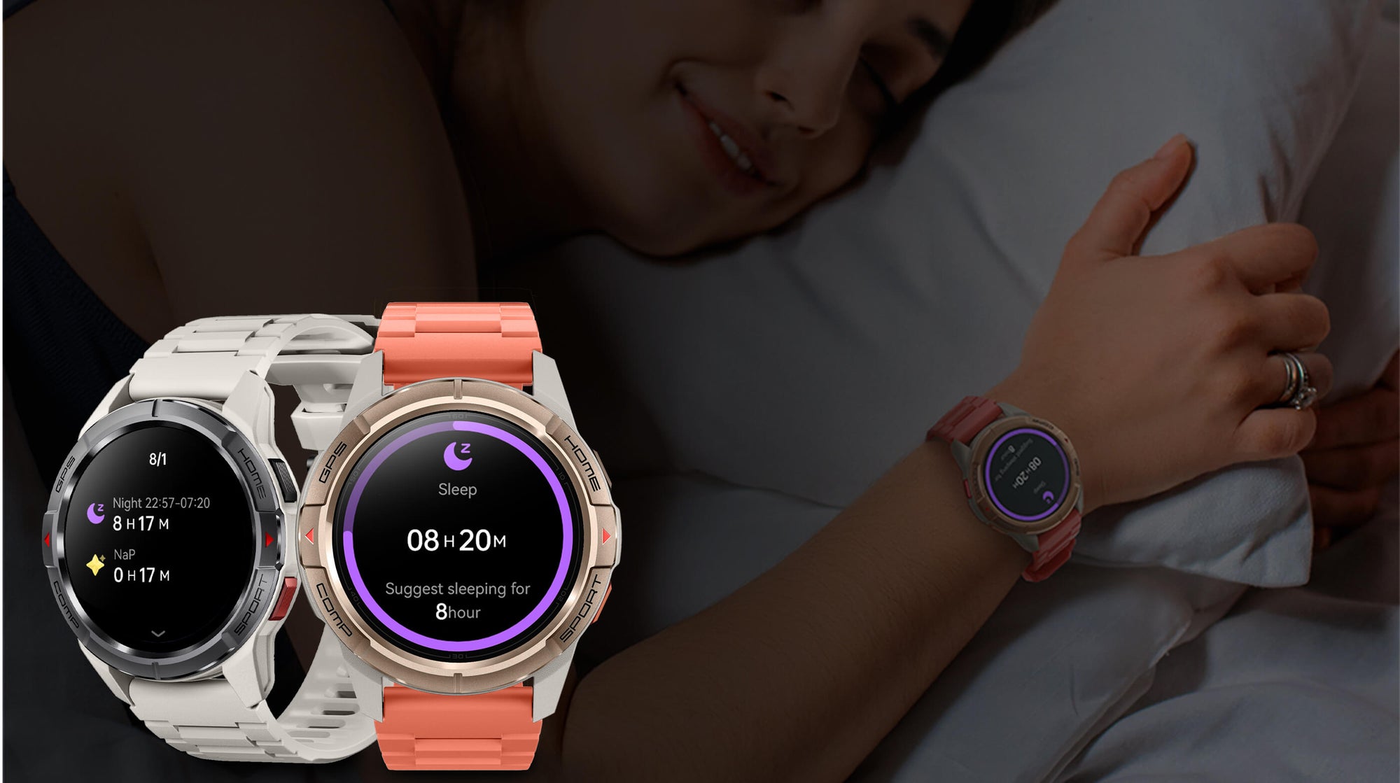 24/7 aktualisierte 4PD-Gesundheitsüberwachung, Trainingsherzfrequenzwarnungen, SpO2, Schlafanalyse, Frauen-Gesundheit, Stressüberwachung und Atemübungen.