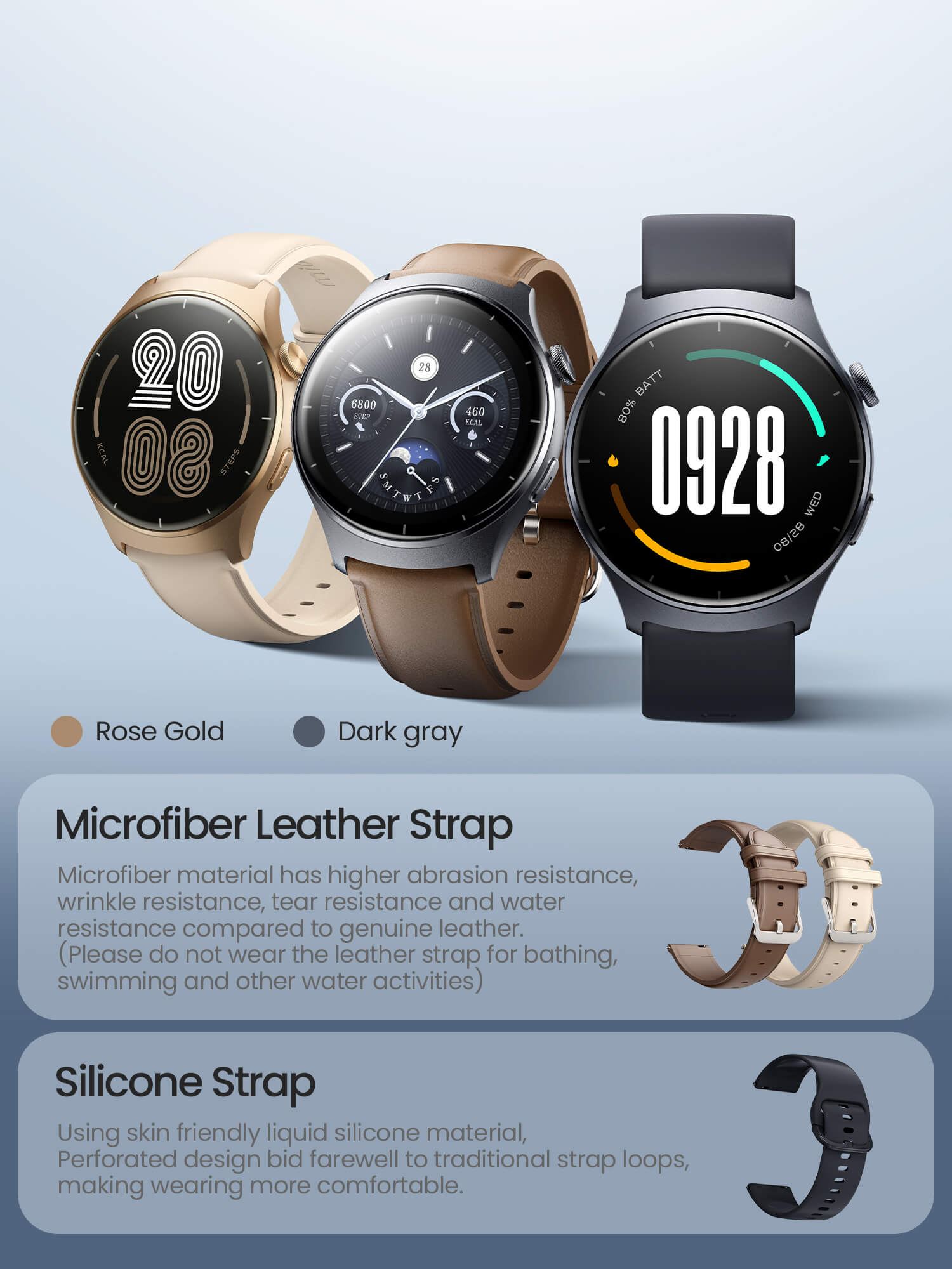 Hands-free wrist calling feature, paired with stylish watch faces and two strap options.