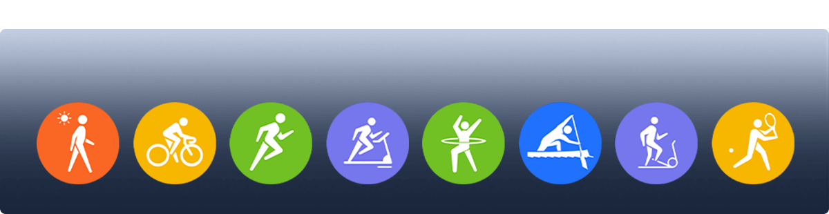 1. Popular sports:Outdoor Run,Indoor Run,Outdoor Walk,Pool Swim,Jump Rope,Elliptical,Row Indoor,Free Training.2.Fitness:Sit-up,Indoor Cycling,Strength,Push-up,Step Machine,Yoga,Pilates,Stair Stepper,Dumbbell,Barbell,Weightlifting,Bobby Jump,Stretching,Core Training,Gymnastics,Combat Fitness,High Bar,Parallel Bars.3.Dances:Square dancing, Street dancing, Belly dancing, Jazz dancing, Latin dancing, Ballet, Zumba, Ballroom dancing.4.Leisure sports:Padel,Pickleball,Roller skating, Archery, Horseback riding, Tug of war, Hula hoop, Kite flying, Frisbee, Equestrian, Racing.5.Balls:Basketball, Football, Badminton, Table tennis, Tennis, rugby, Billiards, Bowling, Volleyball, Handball, Baseball, Softball, Cricket, Beach football, Beach volleyball, Gateball, Hockey, Squash, Water polo, Rattan ball, Dodgeball, Golf.6.Fighting:Tai Chi, Taekwondo, Boxing, Free fighting, Karate, Fencing, Kendo, Muay Thai, Wrestling, Martial arts, Judo.7.Water sports:Paddle, Water polo, Water sports, Diving, Snorkeling, Surfing, Sailing, Kayaking, Rowing,Motorboat, Synchronized swimming.8.Snow sports:Skiing, Snowboard, Outdoor skating, Indoor skating, Curling, Skiing, Snowboard,Biathlon.9.Extreme sports:Skate board, Rock climbing, Bungee, Parkour, Skydiving, Paragliding, MTB.